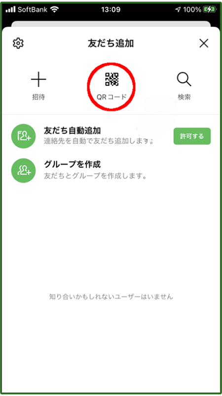 「友だち追加」画面を