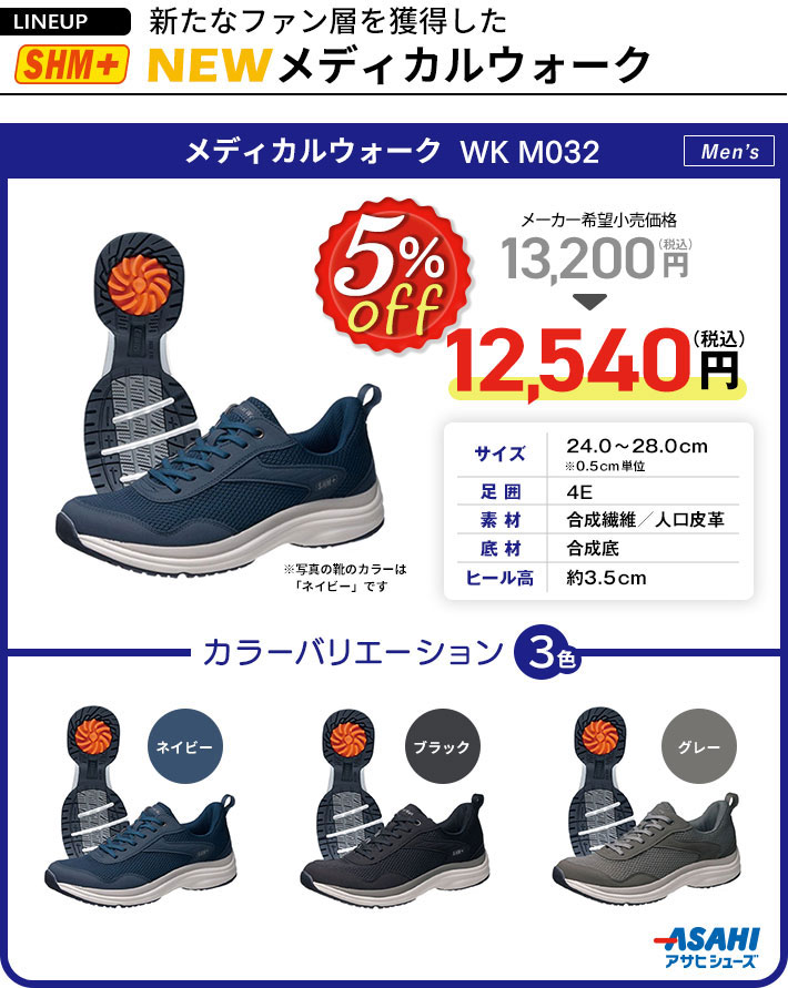 【メルマガ限定 特別価格】アサヒメディカルウォーク WK M032(男性用/SHM+)【送料無料】