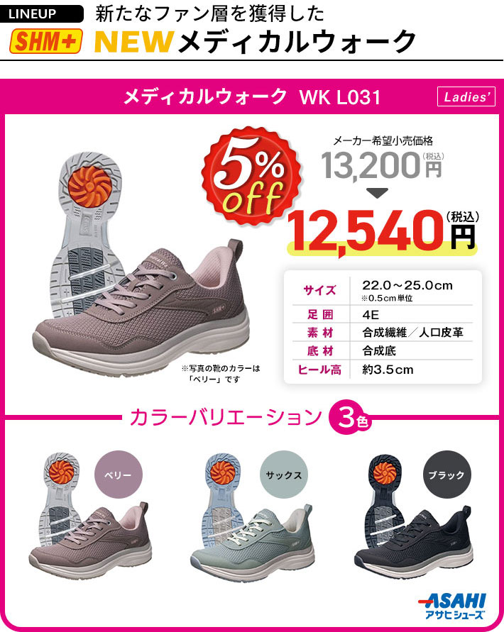 商品名【メルマガ限定 特別価格】アサヒメディカルウォーク WK L031(女性用/SHM+)【送料無料】
