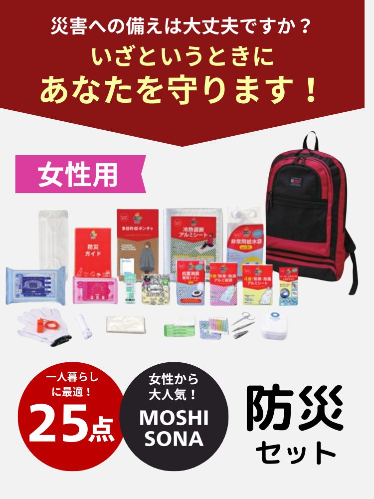 商品名【防災セット】MOSHISONA女性用リュック型防災25点セット